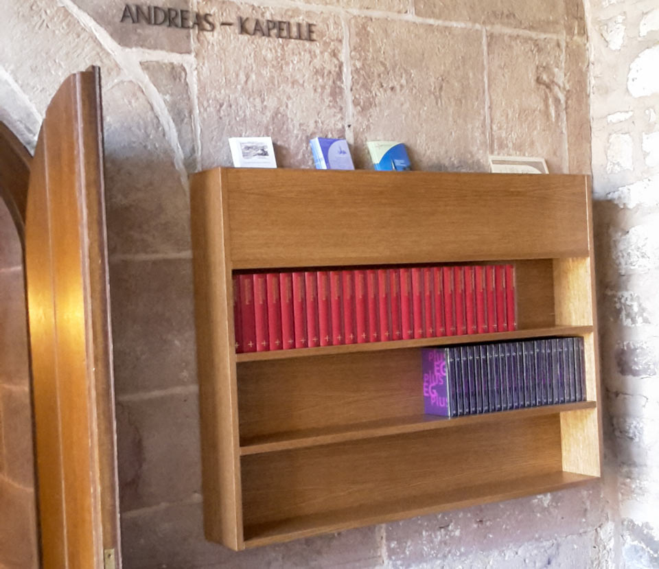 Für die Andreaskapelle wurden neue Gesangbücher und für die Aufbewahrung ein passendes Regal angeschafft.